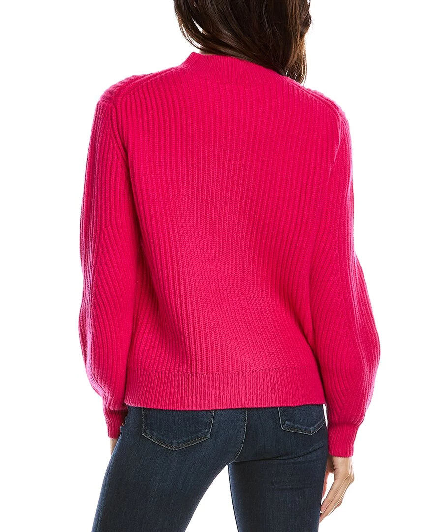 - Curve Rib Wool & Cashmere-Blend Sweater In Pop Pink With Mock Neck And Blouson Sleeves