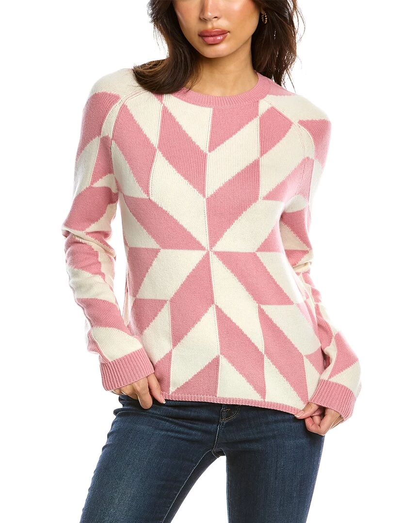 - Graphic Snowflake Wool & Cashmere-Blend Sweater In Pink & Cream With Graphic Snowflake Knit Design
