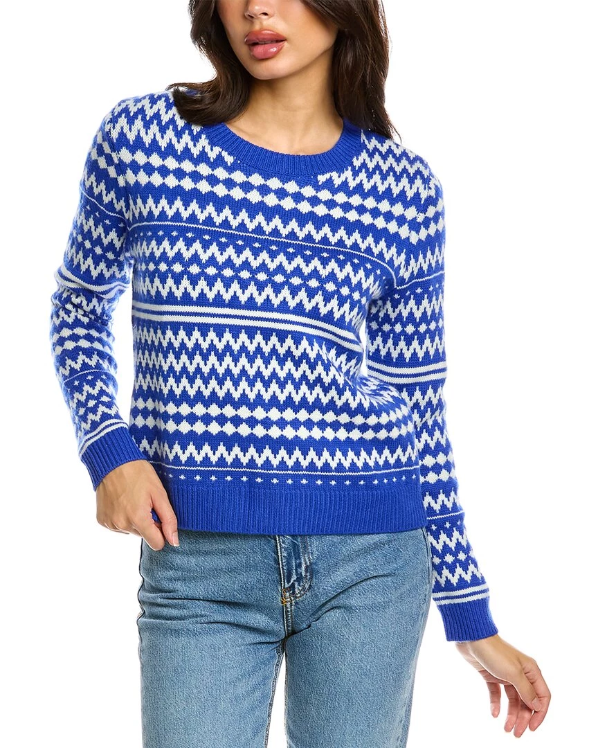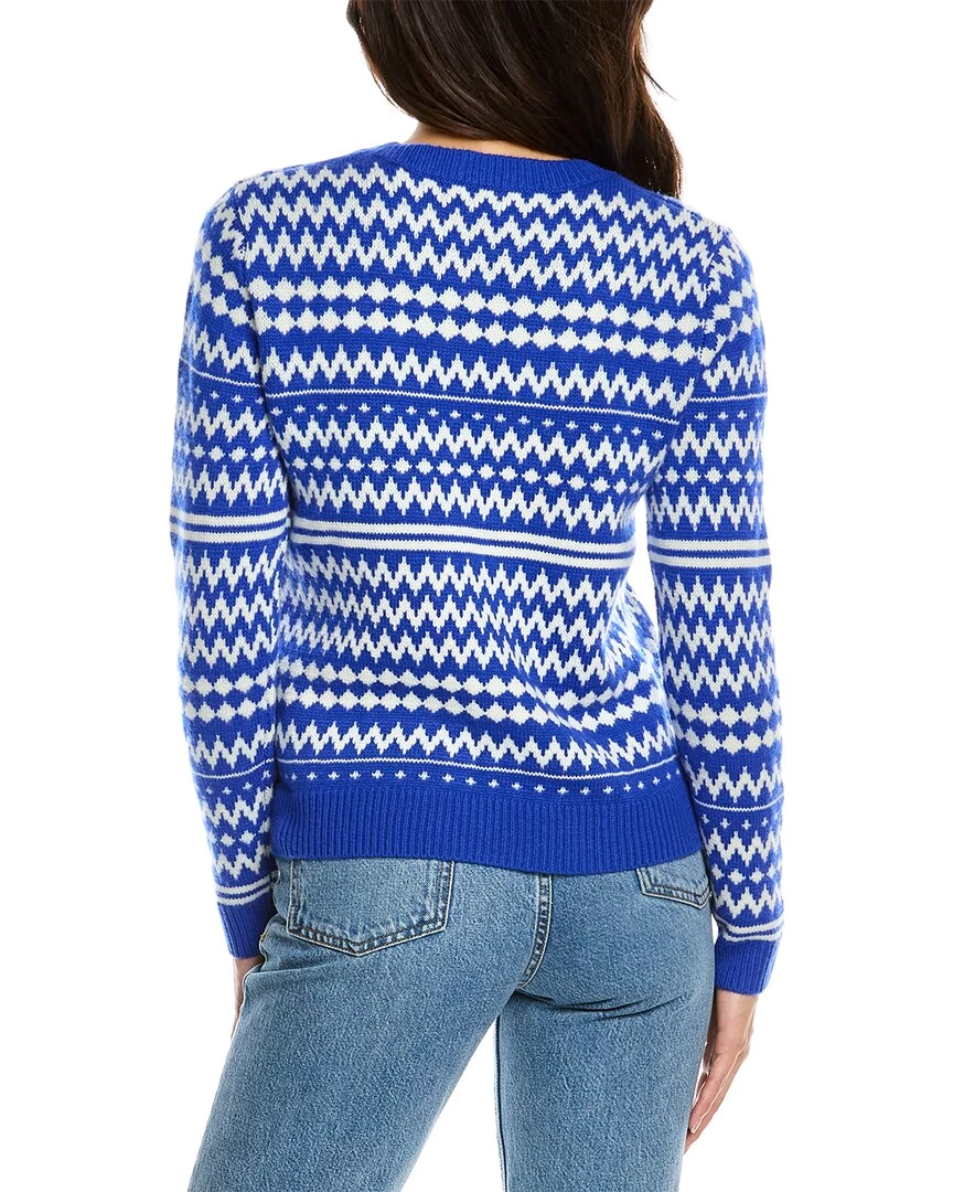 - Pop Fair Isle Wool & Cashmere-Blend Sweater In Royal Blue & Cream With Zig-Zag Knit Stripe Design