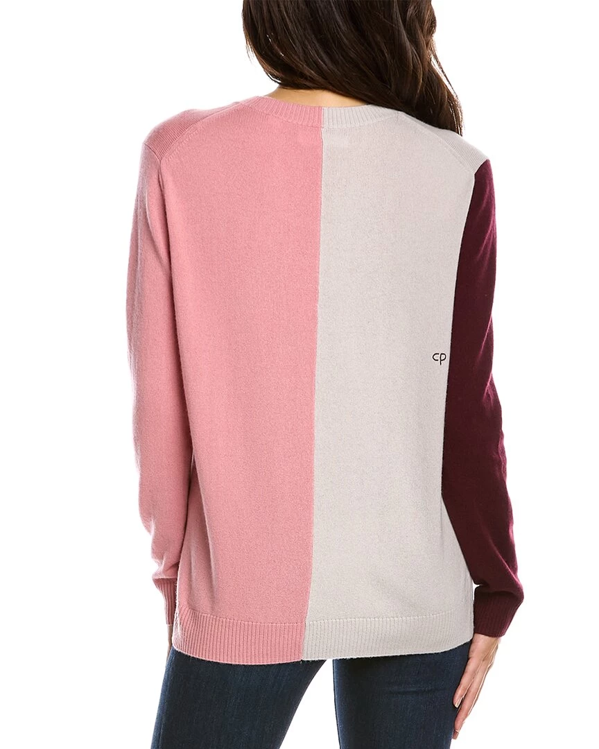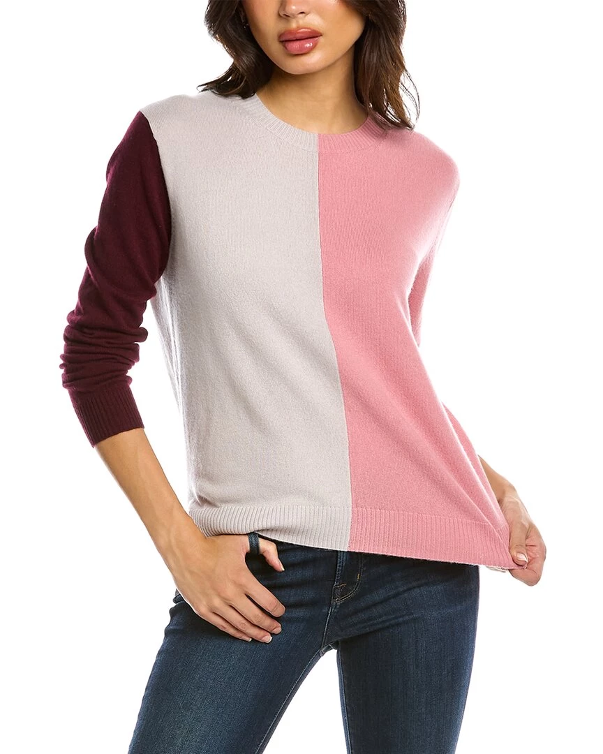 - Soft Cashmere Sweater In Rabbit & Pink & Burgundy With Colorblocked Knit Design