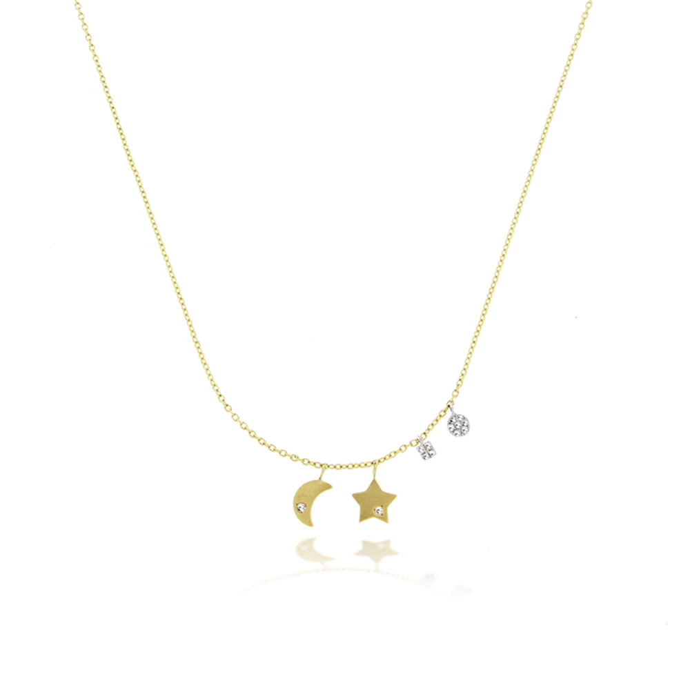 This delicate moon and star necklace is the perfect everyday sparkle you’ve been looking for! Crafted in 14k yellow gold and accented with diamonds.
