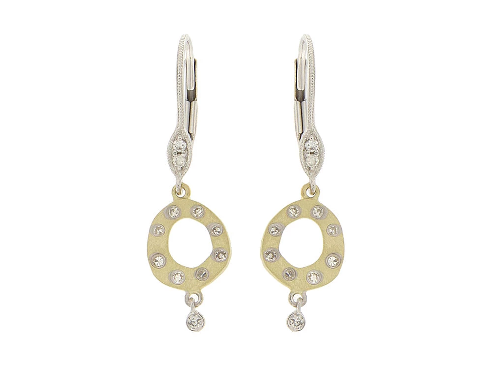 This delicate and feminine earring is the perfect everyday piece! Crafted in two tone 14k gold, yellow and white, it’s complemented with diamonds for extra sparkle.